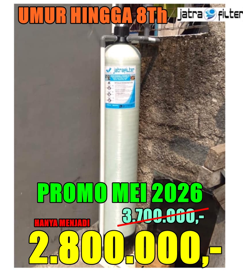 Promo Pasang Filter penyaring air rumah tangga Bulan Mei 2026 WA Fajar WA 081329711746 Bebaskan air rumah anda dari bakteri dan Virus dengan Teknologi saringan Jatra Type AF10 fiber untuk rumah tangga, anda mempunyai masalah dengan air tanah dan atau air sumur bor anda seperti kuning, coklat, putih, mengandung tanah, mengendap, berminyak, kadar besi tinggi ber bau, mengandung pasir bahkan cacing.